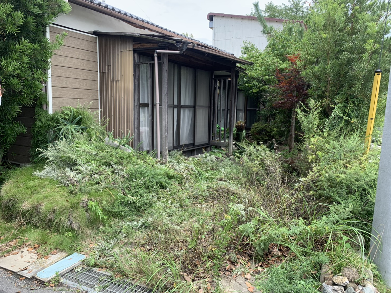 私が物件を調べに訪れた時には、庭木は道路通行の妨げになるほど境界を越え、敷地内も足の踏み場もないほど草木が生い茂り、典型的な放置空き家でした。
